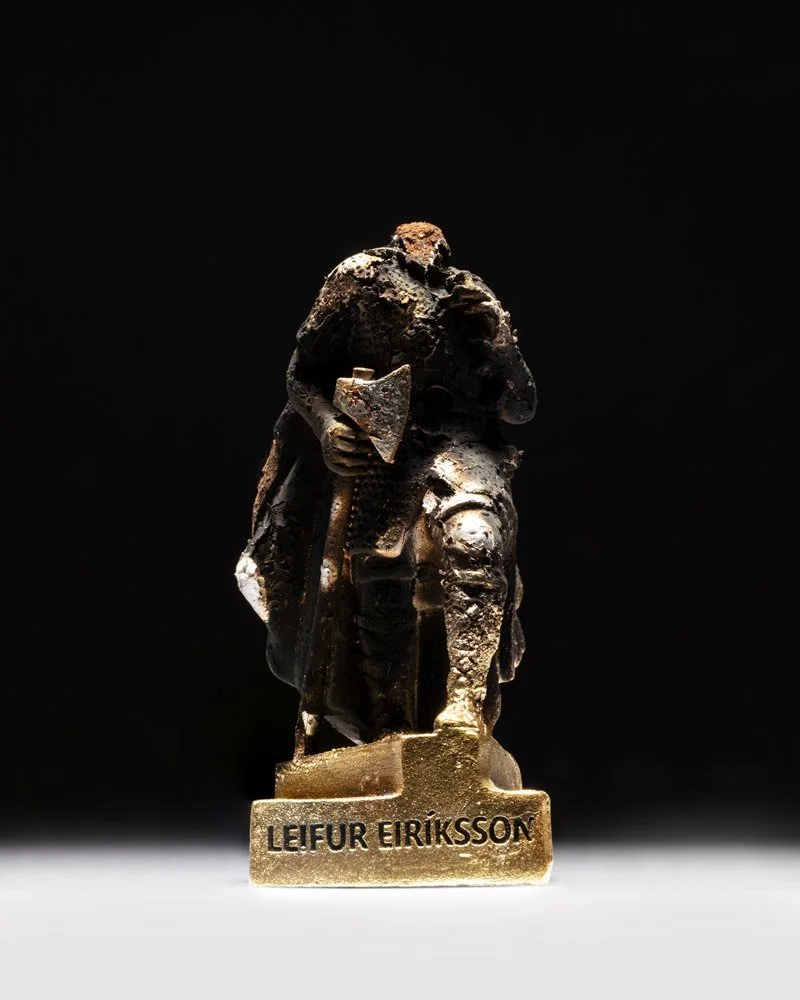 “After Leif” examines the Leif Eriksson Statue in Reykjavík as a case of historical translation, highlighting its ties to national identity and tourism. One of Iceland’s most prominent depictions of a Viking, the monument was created by American sculptor Alexander S. Calder and unveiled in 1932. It is continuously reproduced through tourism, one of Iceland’s largest economic sectors, promoting the country’s Viking past, although most Icelanders descend from farming communities. This repetition reinforces the heroic, hypermasculine Viking image.